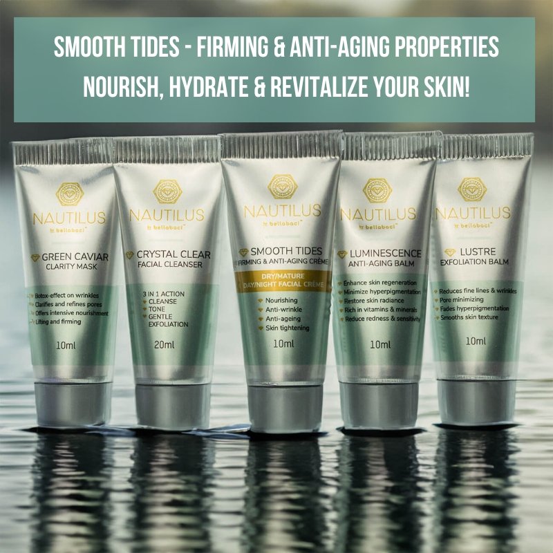 Experience the transformative power of the Nautilus Smooth Tides Firming Anti-Aging Crème in a convenient sample size. This luxurious Starter kit is specially formulated to nourish, hydrate, and revitalize your skin, giving you a youthful and radiant appearance.